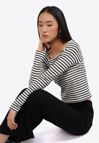 Áo Dài Tay Cổ Vuôn... Áo Dài Tay Cổ Vuông Kẻ Ngang