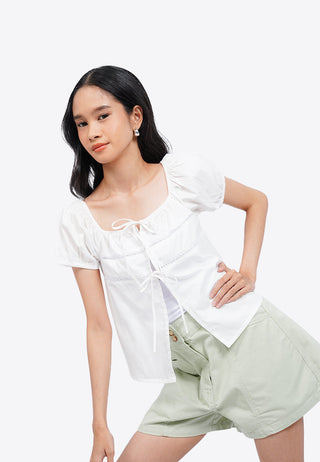 Áo Sơ Mi Tay Phồng... Áo Sơ Mi Tay Phồng Cột Nơ