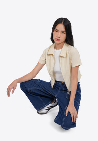 Áo Sơ Mi Oversize ... Áo Sơ Mi Oversize Ngắn Tay Vải Nhăn