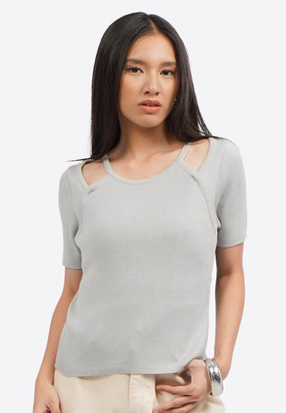 Áo Thun Dệt Kim Cổ... Áo Thun Dệt Kim Cổ Cắt Xẻ Cách Điệu