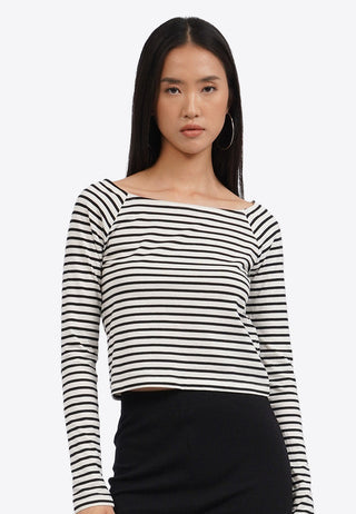 Áo Dài Tay Cổ Vuôn... Áo Dài Tay Cổ Vuông Kẻ Ngang