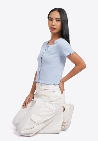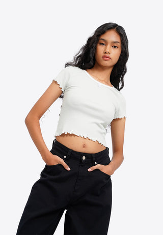 Áo Thun Tay Ngắn V... Áo Thun Tay Ngắn Viền Xoắn Diếp