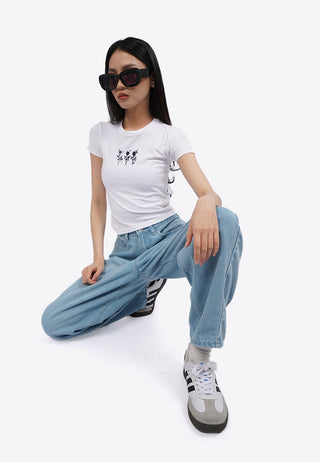 Áo Thun Ôm Ngắn Ta... Áo Thun Ôm Ngắn Tay In họa Tiết