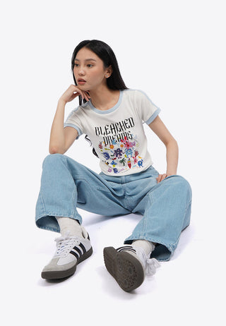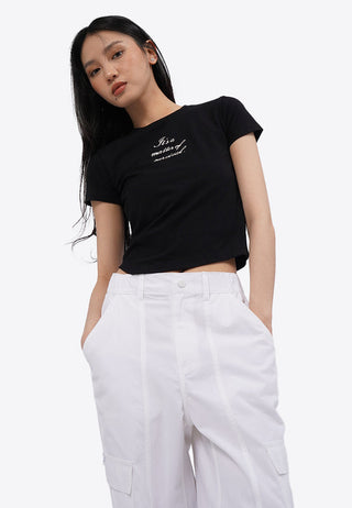 Áo Thun Ôm Ngắn Ta... Áo Thun Ôm Ngắn Tay In họa Tiết